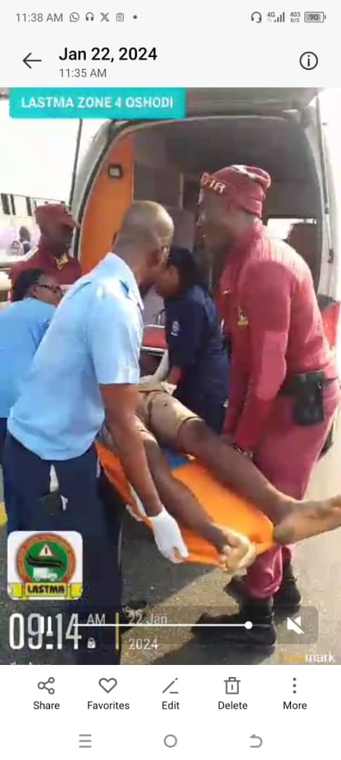 Operatives of the Lagos State Traffic Management Authority (LASTMA) and Officials of the Lagos State Ambulance Service (LSAMBUS) today jointly rescued a male accident victim on Anthony-Oke Bridge inward Gbagada area of Lagos.