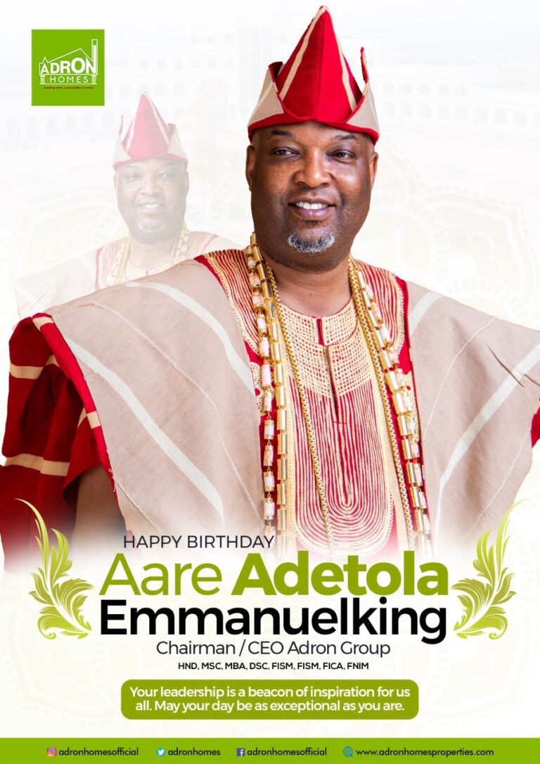 Aare Adetola Emmanuel-King, the Chairman and CEO of Adron Homes and Property, has once again expressed his dedication to building new cities and impacting lives of people through affordable homes and philanthropy in celebration of his birthday today April 2nd 2024.