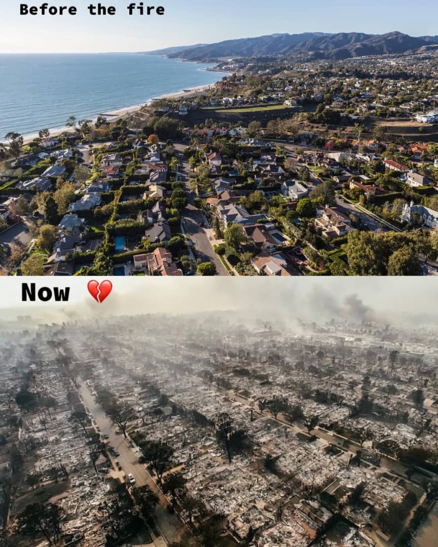 In fulfillment of his prophecy, The two biggest wildfires ravaging the Los Angeles area have burned at least 10,000 homes, buildings and other structures, officials said Thursday as they urged more people to heed evacuation orders after a new blaze ignited and quickly grew.