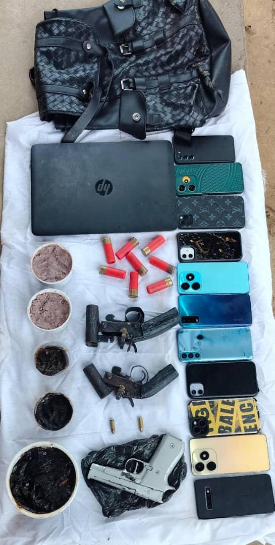 Acting on credible intelligence carried out on the activities of cultists around Mosogar and its environs, on 11/06/2025, at about 0345hrs, Operatives of CP – Special Assignment Team ( CP – SAT ) led by ASP Julius Robinson stormed the residence of one Koko Josh ‘’m”, aged 29 years, a native of Otor-Iyede Community in Isoko North LGA, Delta State, resident of Adams Street Area Mosoghar and one Asomugha Clinton m”, 27 years, a native of Mbaisse Community in Ezinetthe LGA, Imo State. During the preliminary investigation, a search warrant was executed in his premises during which a black bag containing a Fabricated Baretta Pistol loaded with two(2) rounds of live ammunition, two (2) locally made guns, eight rounds (8) of live cartridges were recovered also recovered are multiple phones laptop and some fetish substances. Further investigation led to the arrest of Anthony Kelvin m” 26 yrs, a native of Orhoakpor Community in Ethiope East LGA, Delta State and Gift Amotsuka m” 25 yrs, a native of Jakpa Community in Warri North LGA, Delta State, both residents at Adam Street Mosoghar. They are all suspected to be members of the Aiye confraternity. Suspects are in custody, and the investigation is ongoing.