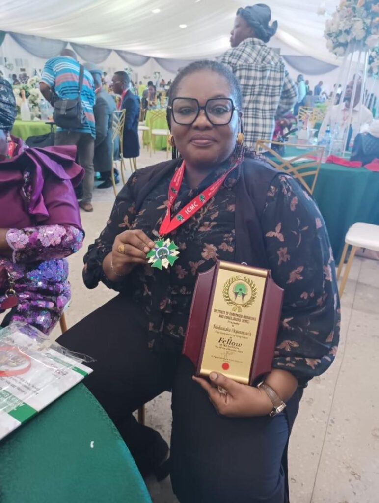 The Institute of Chartered Mediators and Conciliators, ICMC, recently in Abuja, inducted Barr. (Mrs.) Ndidiamaka Akpaumontia and other qualified members as Fellows of the Institute during the year 2023 annual conference.