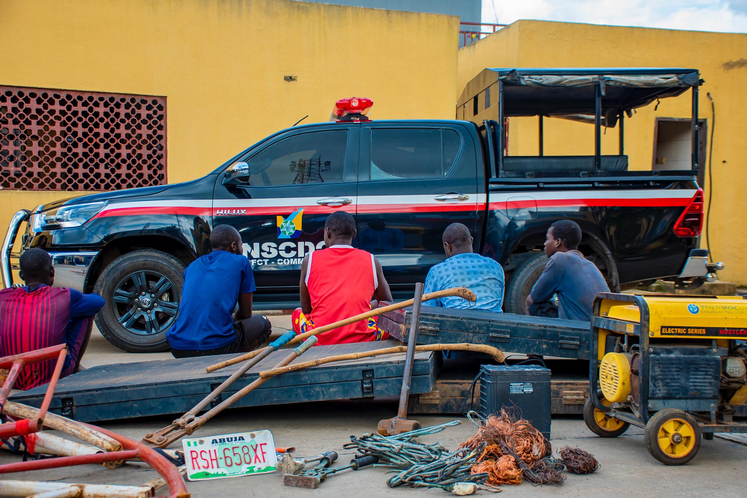 Operatives of Nigeria Security and Civil Defence Corps (NSCDC), Federal Capital Territory (FCT) Command arrested five (5) suspected vandals at two different locations in Abuja city center.