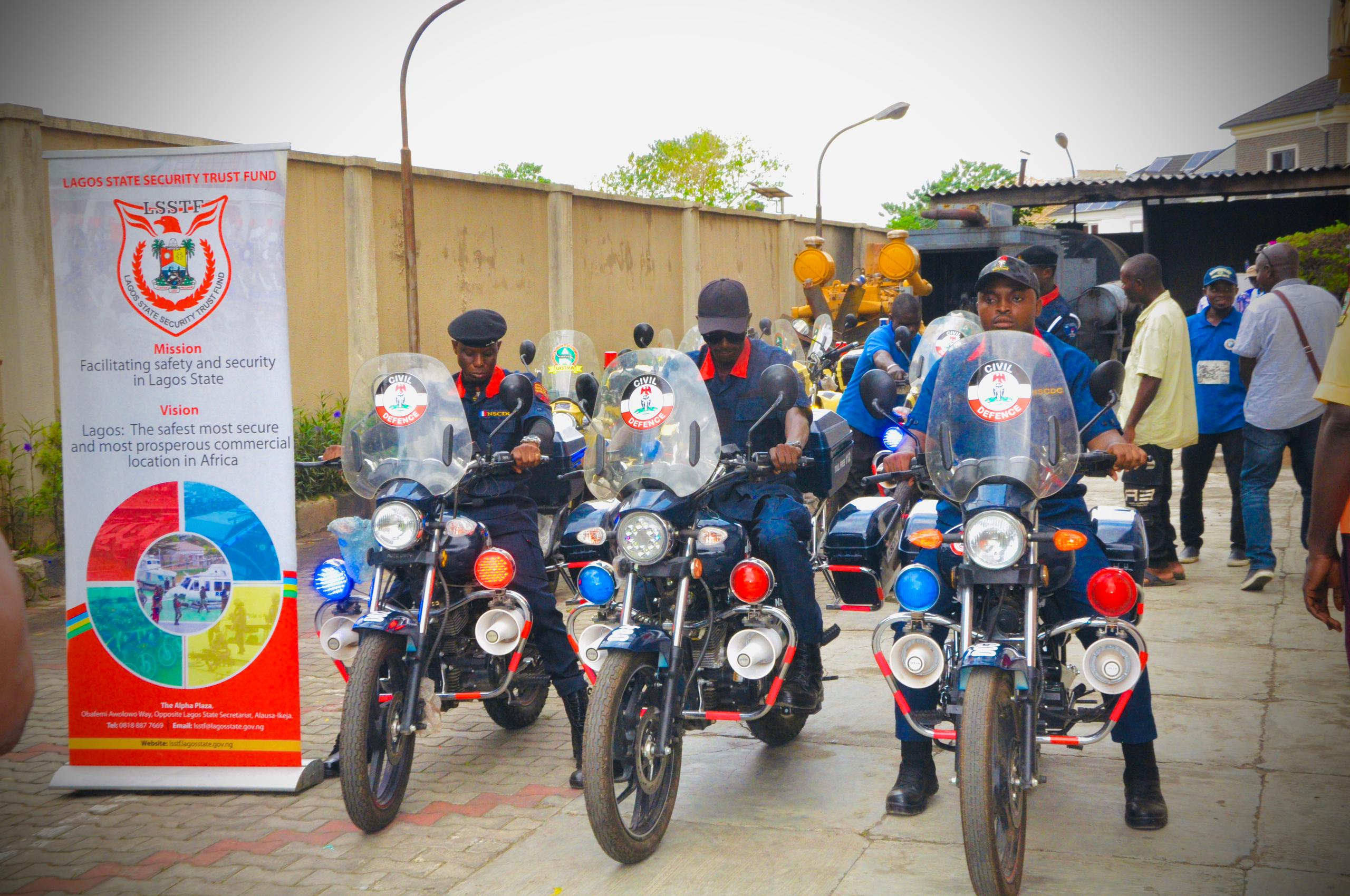 Today, Thursday, 14th March, 2024, the Board of Trustees and Management of the Lagos State Security Trust Fund ( LSSTF ) handed over four ( 4 ) Motorbikes to the State Commandant, Nigeria Security and Civil Defence Corps ( NSCDC ), Lagos State Command, Mr Adedotun Sunday Keshinro in fulfilment of their earlier promise to continue to support the Corps to effectively play its statutory role in the fight against insecurity in the state.