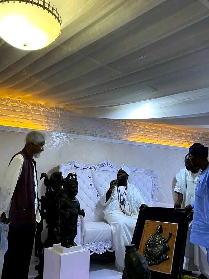 To conclude the visit, the Ooni presented Professor Wole Soyinka with sacred Ife bronze artifacts symbolic gifts in recognition of his lifelong work in promoting cultural unity and strengthening ties between Yorubas at home and abroad.