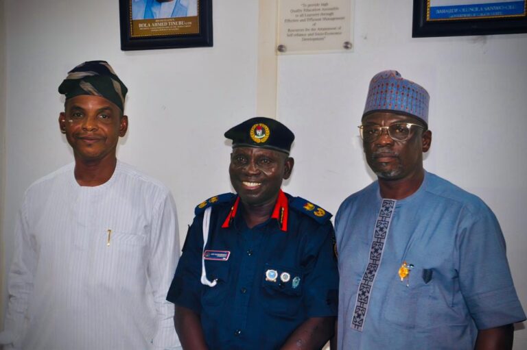 The State Commandant, Nigeria Security and Civil Defence Corps ( NSCDC ), Lagos State Command, Mr Adedotun Keshinro in his bid to further deepen the conversations on the Safe School Project in the state in line with the vision of the Commandant General of the Corps, CG Ahmed Abubakar Audi, PhD., mni, OFR and the directive of the Federal Government, visited the Honourable Commissioner for the Ministry of Basic and Secondary school Education, Mr Tolani Jamiu Ali – Balogun in his office.
