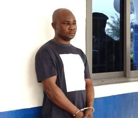 This is Victor Benjamin Fajemirokun, the man suspected to be the man behind the gruesome murder of a Federal Road Safety Corps (FRSC) official Olufunmilayo Lasisi and her daughter, Sewa. He was repatriated to Nigeria after being arrested in Ghana where he fled to when the Nigeria Police declared him wanted